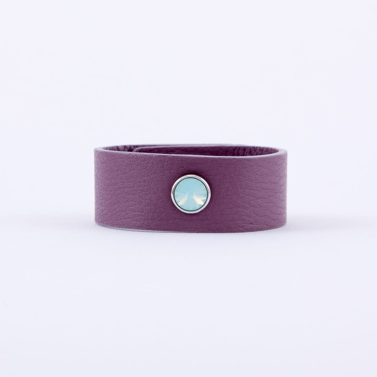 Minimalistyczna bransoletka z niebanalnym połączeniem koloru: ciemnego fioletu z błękitem. Ale właśnie to oryginalne zestawienie daje efekt niepowtarzalności. Mamy tutaj bransoletkę na ciemnofioletowym pasku wykonanym z najwyższej jakości skóry licowej oraz jeden mini chunks, właśnie w kolorze błękitu.